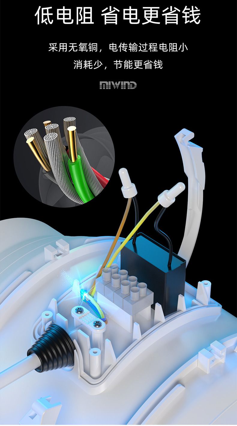 3、选用全铜芯精密电机,搭配优质滚珠轴承,结构精致紧凑,噪音低、风量大、震动小,运行稳定,风量持久。
